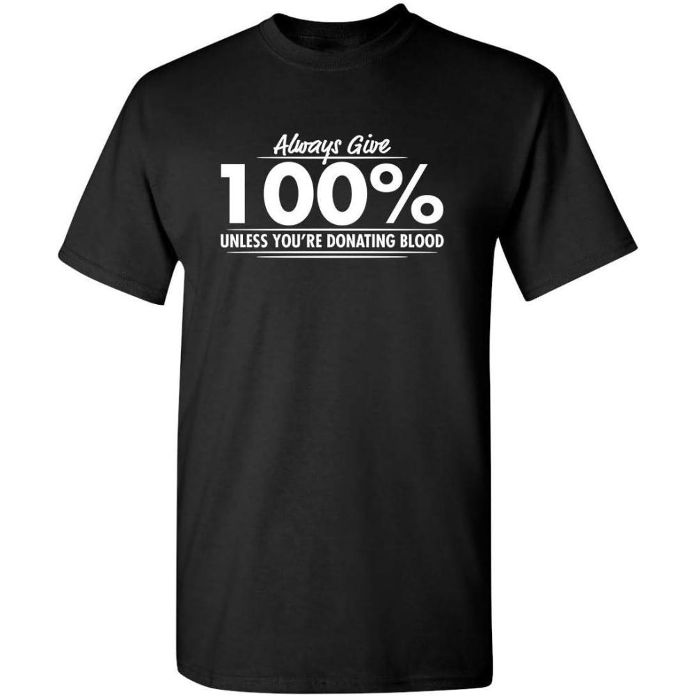 Always Give Hundred Percent Funny Graphic Tee | Bold Sarcastic Humor Mens T-Shirts | Graphic Novelty Sarcastic Funny T Shirt(Black)