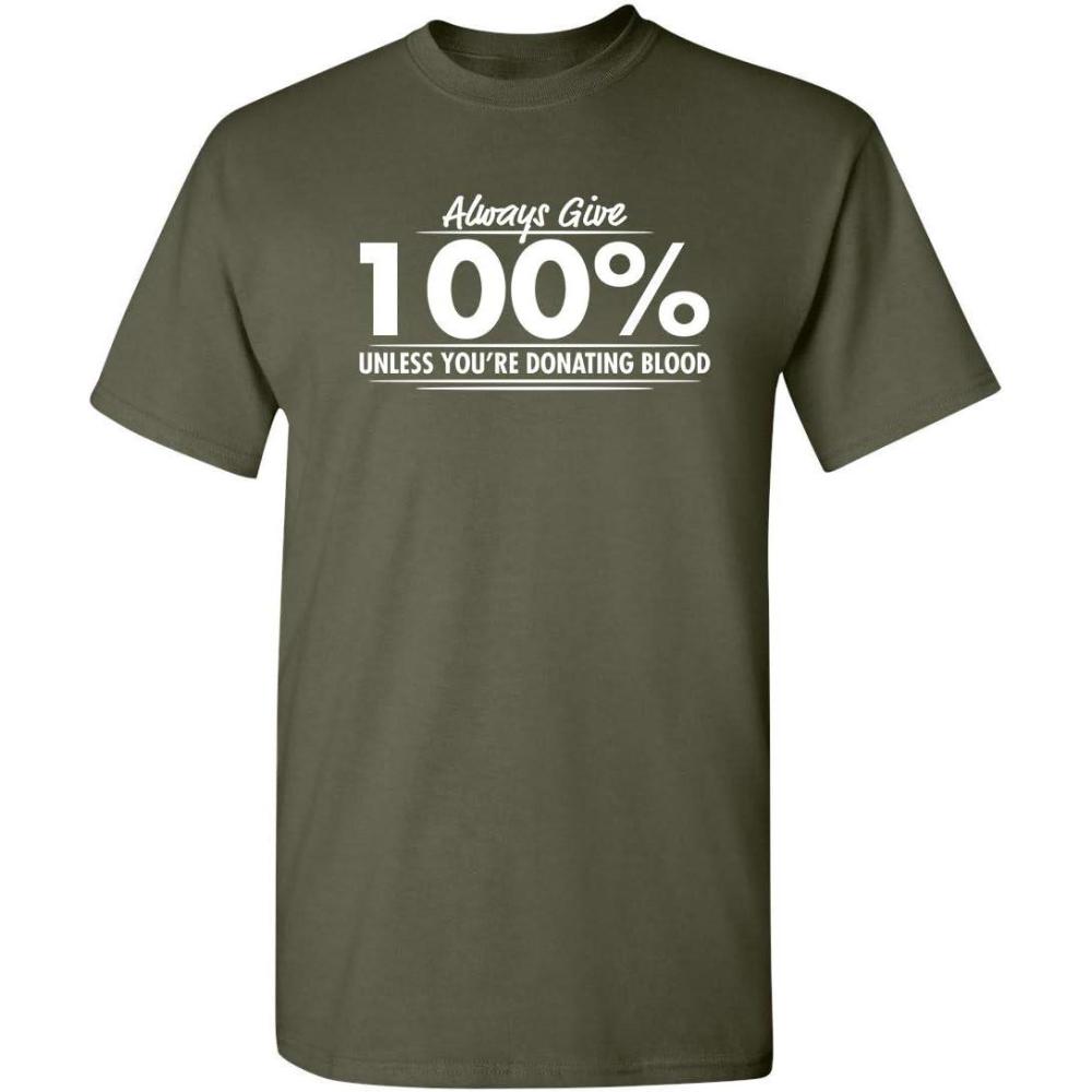 Always Give Hundred Percent Funny Graphic Tee | Bold Sarcastic Humor Mens T-Shirts | Graphic Novelty Sarcastic Funny T Shirt(Military)