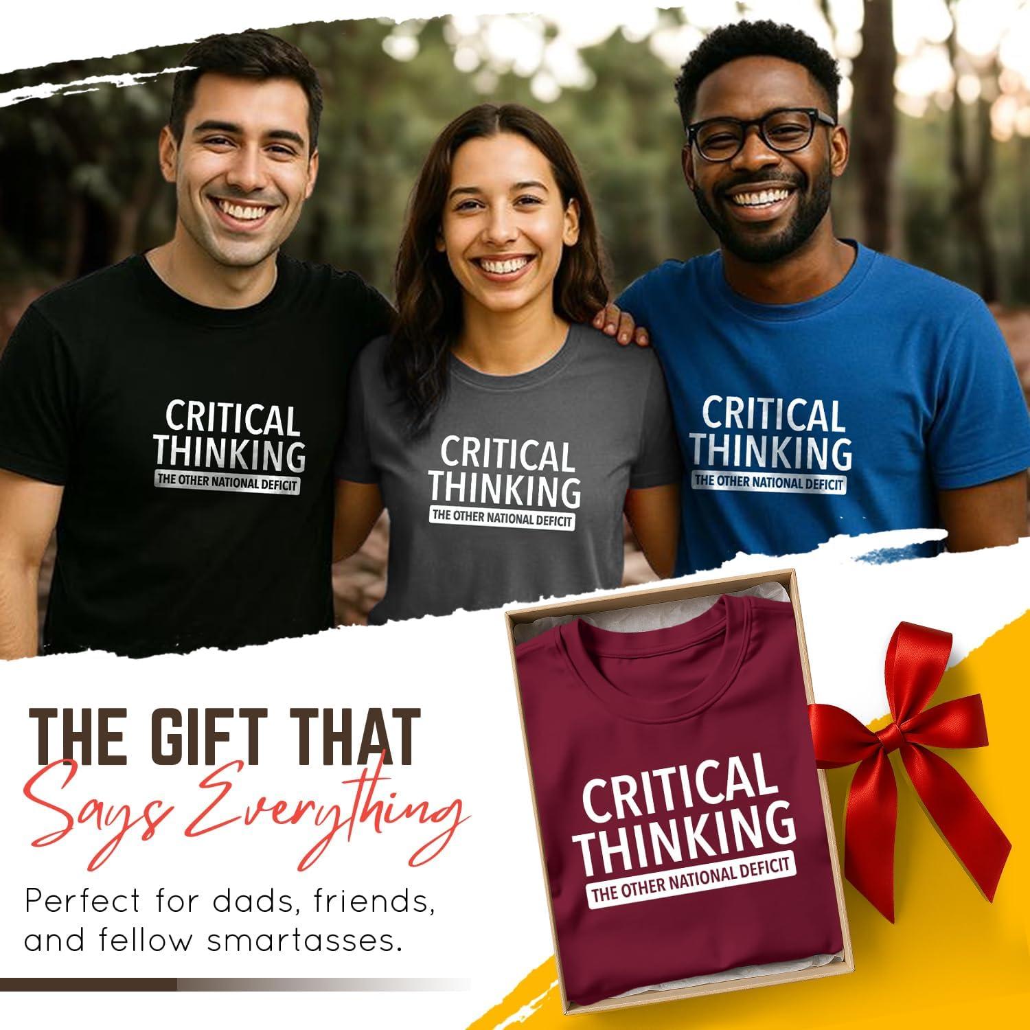 Critical Thinking Sarcastic Mens Funny Graphic T-Shirts | Printed in USA Novelty Graphic Tees for Men | Funny Shirts for Men(Charcoal)