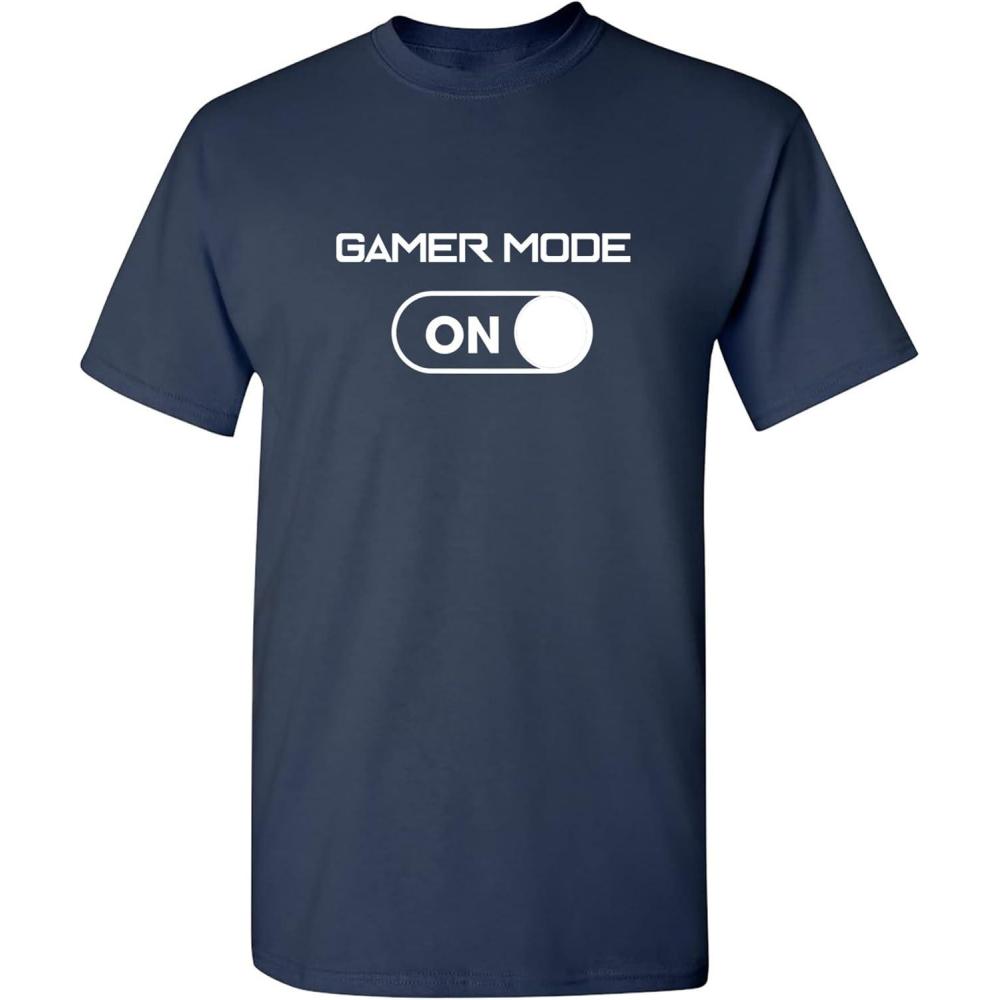 Gamer Mode On Video Game Graphics Gaming Tees for Men | Gaming Gifts for Men Graphic Novelty Sarcastic Funny T Shirt(Navy)