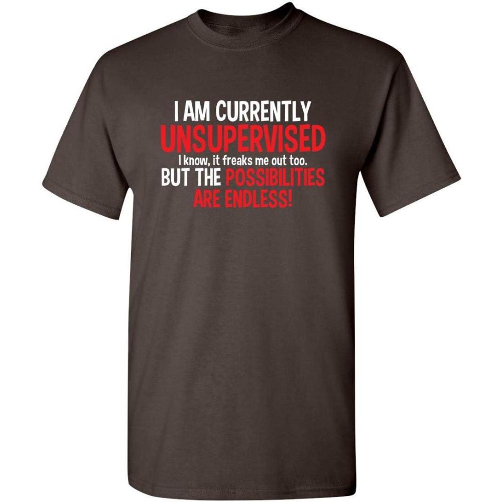 I’m Currently Unsupervised Novelty Graphic Sarcastic Humorous Mens Funny T Shirt(Brown)