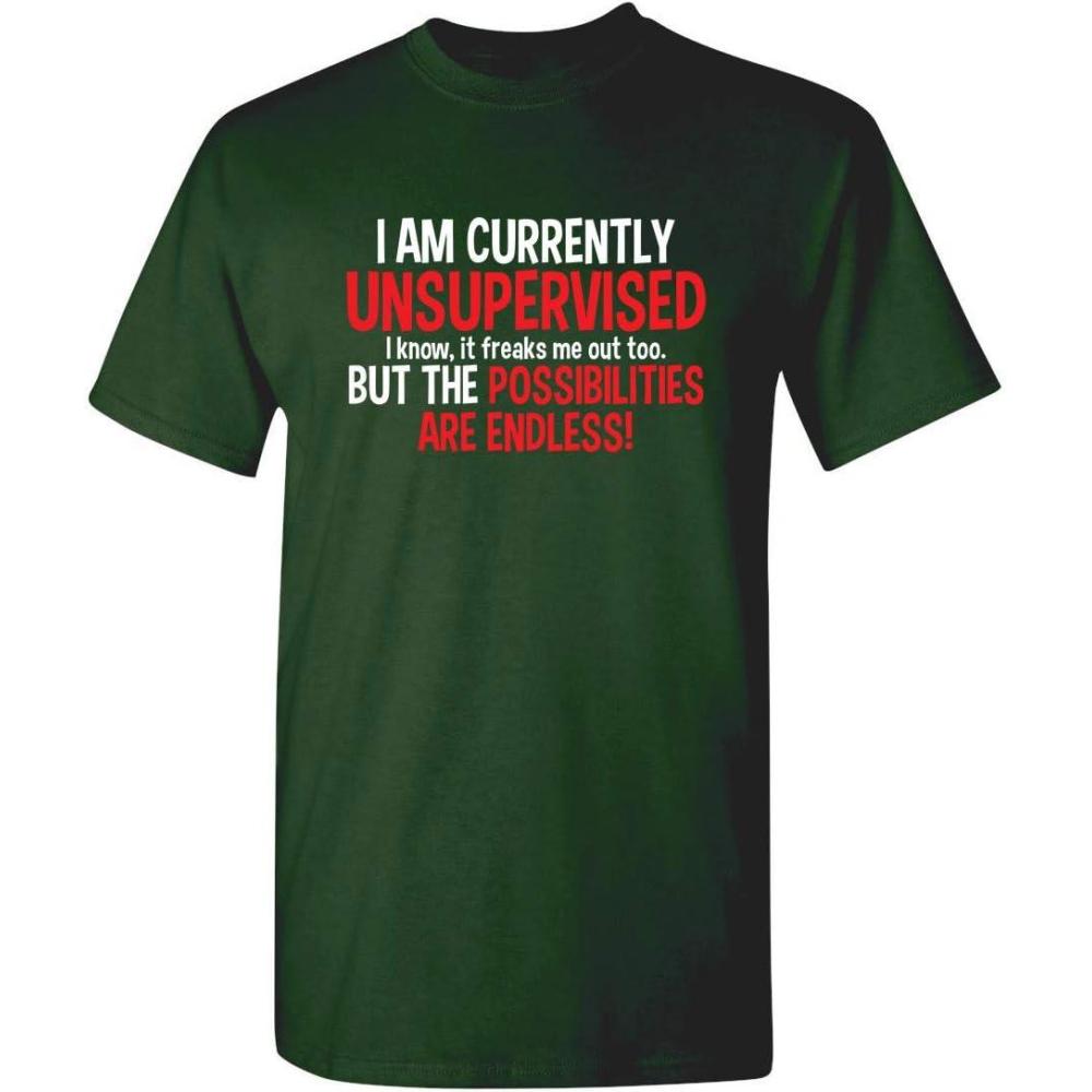 I’m Currently Unsupervised Novelty Graphic Sarcastic Humorous Mens Funny T Shirt(Forest)