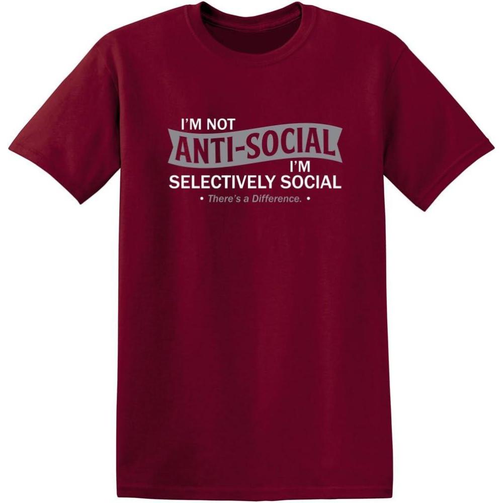I’m Not Anti-Social I’m Selectively Social Funny Men Tee Shirt | Casual Sarcastic Humor Top | Novelty Sarcastic Funny T Shirt(Garnet)
