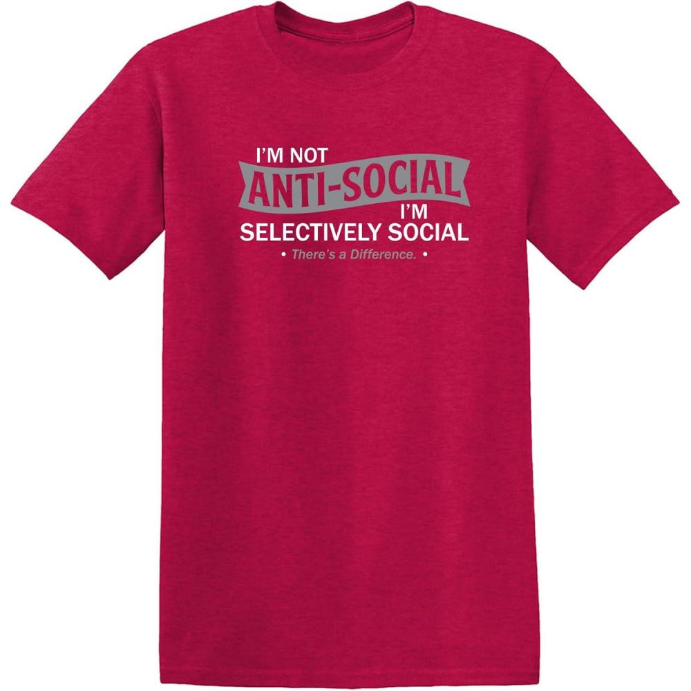 Be the first to review “I’m Not Anti-Social I’m Selectively Social Funny Men Tee Shirt | Casual Sarcastic Humor Top | Novelty Sarcastic Funny T Shirt(Heather Red)”