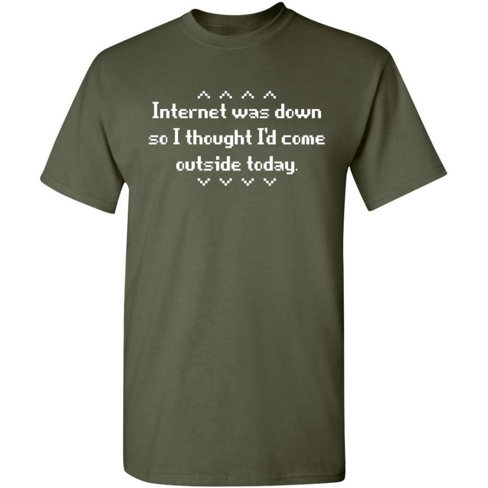 Internet was Down So Thought I Would Come Outside Today Graphic Tee | Graphic Novelty Sarcastic Funny T Shirts(Military)