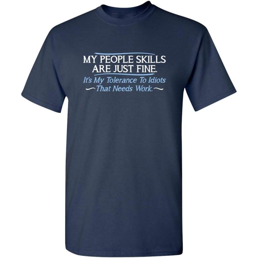 My People Skills are Fine Graphics Tees for Men | Novelty Funny Men’s Graphic T-Shirts(Navy)