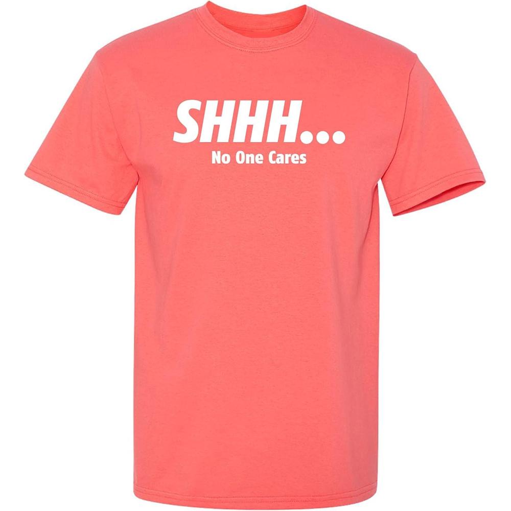 Shhh No One Cares Graphic Novelty Sarcastic Funny T Shirt(Coral)