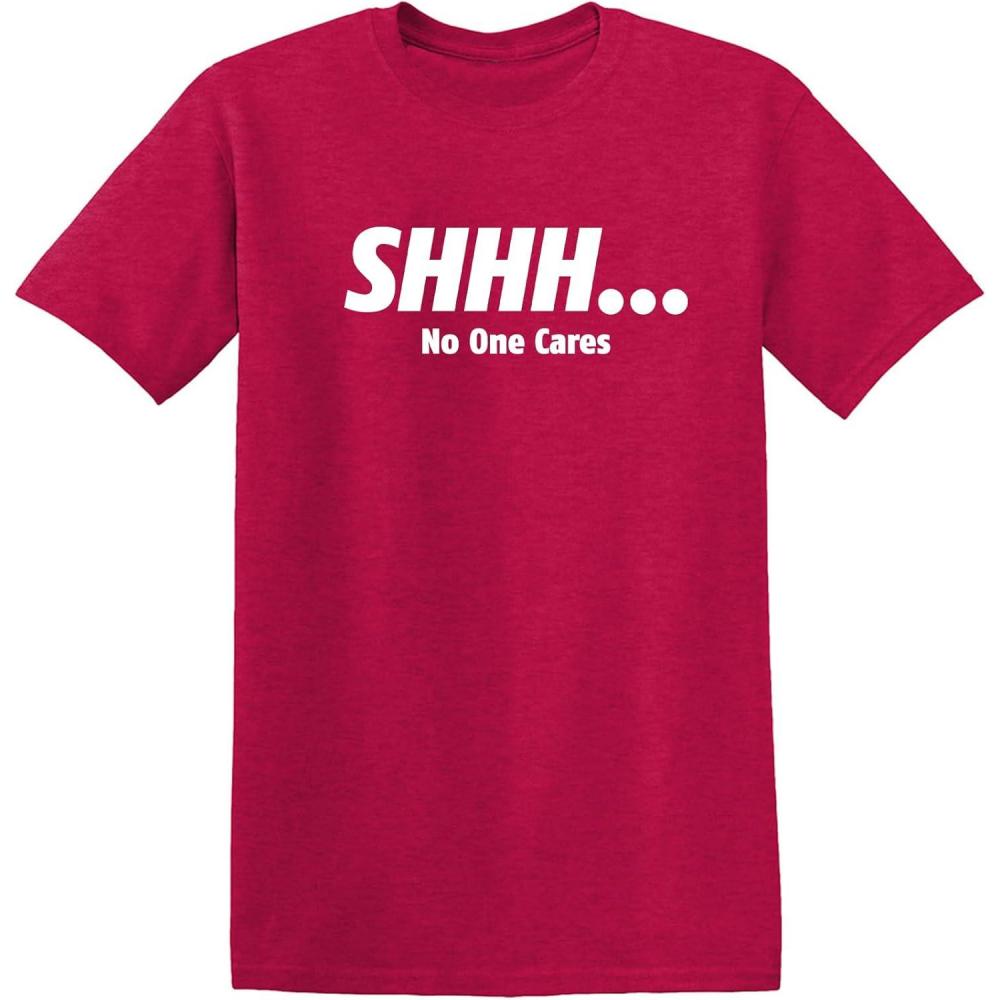 Shhh No One Cares Graphic Novelty Sarcastic Funny T Shirt(Heather Red)
