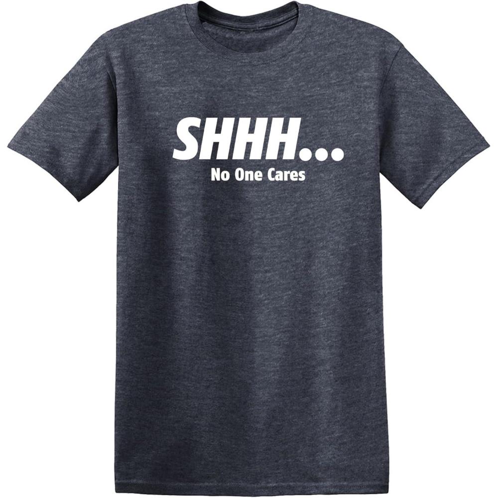 Shhh No One Cares Humor Sarcasm Funny T Shirt(Heather Grey)