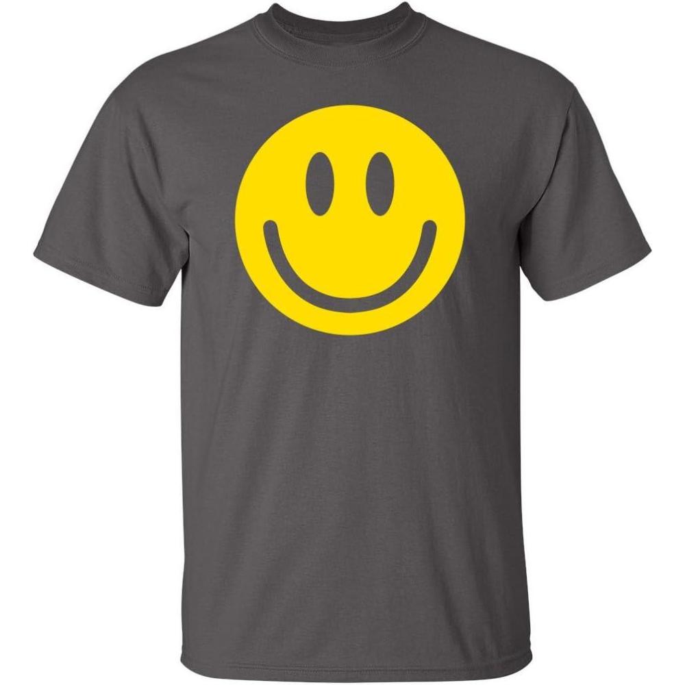 Smile Face Emoticons Happy Face Mens Graphic Hippie 70s Funny T Shirt(Charcoal)