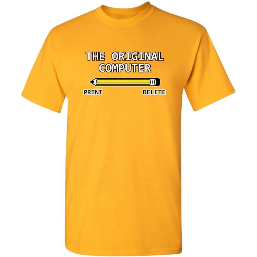The Original Computer Vintage Retro Sarcastic Men’s Tees | Novelty Funny Graphics T-Shirts | Casual Graphics Funny T Shirt(Gold)