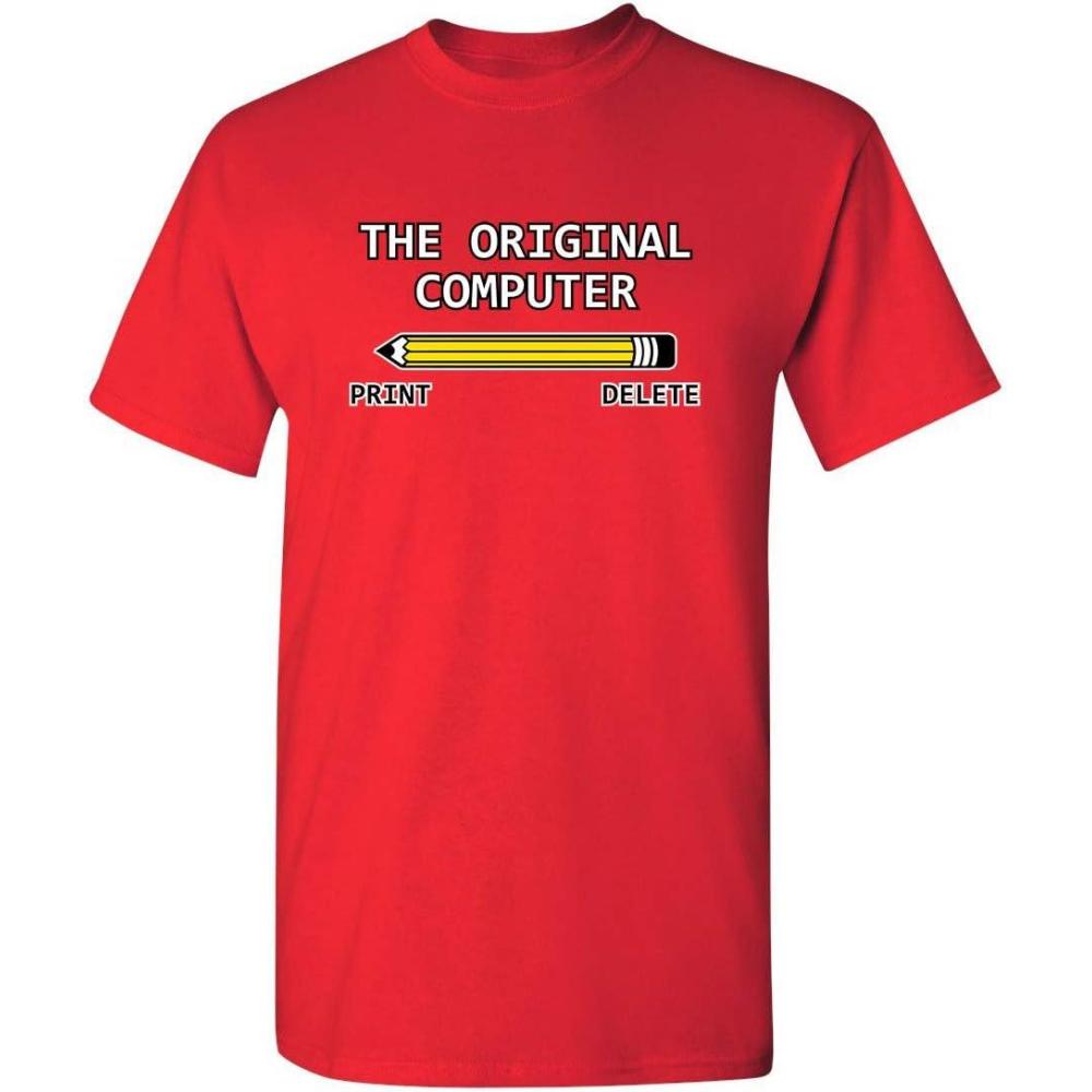 The Original Computer Vintage Retro Sarcastic Men’s Tees | Novelty Funny Graphics T-Shirts | Casual Graphics Funny T Shirt(Red)