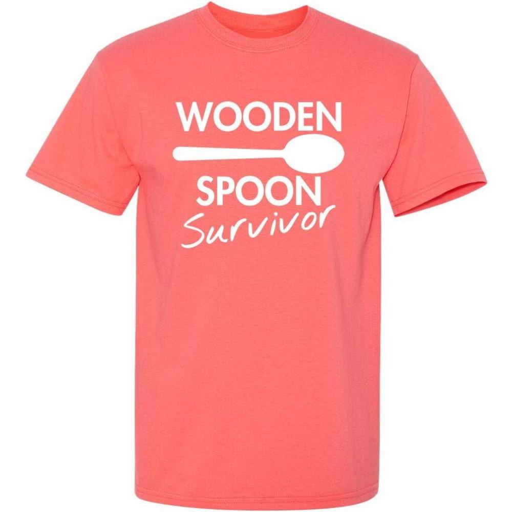 Wooden Spoon Survivor Funny Humor Tee | Mens T-Shirts Casual Style | Bold Mens Graphic Novelty Sarcastic T-Shirts(Coral)