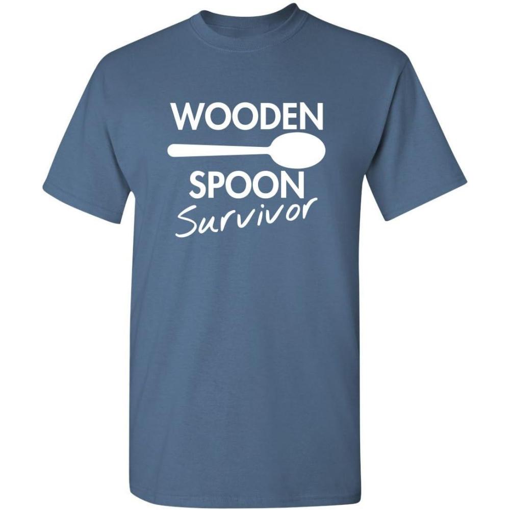 Wooden Spoon Survivor Funny Humor Tee | Mens T-Shirts Casual Style | Bold Mens Graphic Novelty Sarcastic T-Shirts(Dusk)