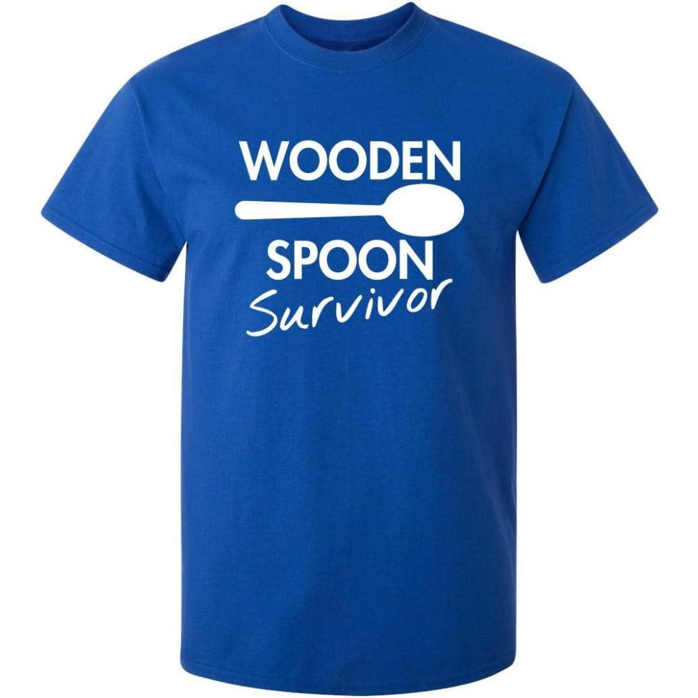 Wooden Spoon Survivor Funny Humor Tee | Mens T-Shirts Casual Style | Bold Mens Graphic Novelty Sarcastic T-Shirts(Royal)